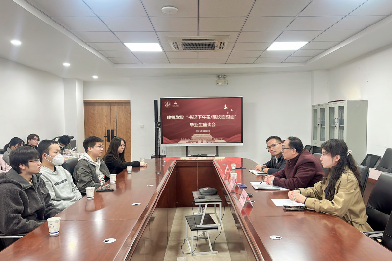 为进一步推动2025届毕业生高质量就业,3月27日下午,建筑学院在长安大学朝晖园“一站式”学生社区中心交流研讨室举办“书记下午茶/院长面对面”毕业生专题座谈会。学院党委书记贾侃、院长侯全华、党委副书记王妍婷、学办副主任周艳龙、辅导员王雨琪以及2025届毕业生代表参会,会议由周艳龙主持。