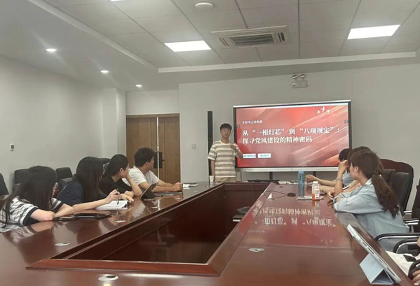 本科生第四党支部书记李凡以“一根灯芯”的作风故事引出中国共产党对作风建设的重视。优良传统和作风是烙在中国共产党骨子里的基因和血脉,党的作风建设有起点,没有终点,是一个永远在路上的历史进程。