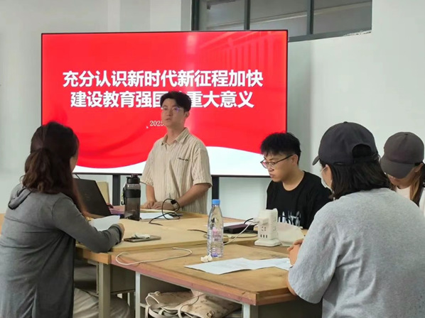 研究生第一党支部书记成卓以《学习贯彻习近平总书记重要论述,推动作风建设走深走实》为题,从贯彻落实中央八项规定精神的经验出发,结合典型案例分析,为支部党员生动阐释了中央八项规定精神的内涵与实质。