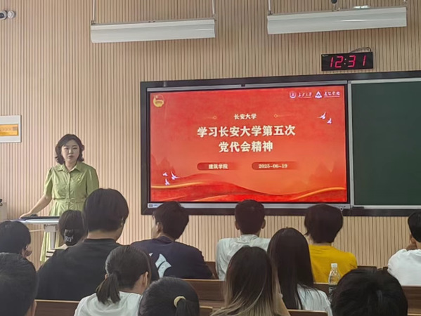 为全面贯彻党的二十届三中全会精神,落实新时代党的建设总要求和新时代党的组织路线,深入学习中国共产党长安大学第五次代表大会精神,强化团员政治引领,筑牢思想根基,建筑学院于6月19日中午在WX2204教室开展了学习长安大学第五次党代会精神主题团课。此次团课由建筑学院团委书记落昊飞主讲,建筑学院第十七期青马班全体学员与新发展团员参与学习。