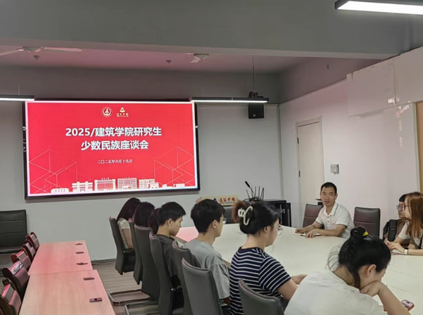 6月19日,建筑学院在南校区西院建筑馆三楼会议室召开研究生少数民族学生座谈会。座谈会上,王杰围绕少数民族研究生的培养计划、职业规划、人际交往、宗教政策、生活习俗、地域差异等方面与与会研究生开展交流座谈,提醒大家一定要提前做好论文准备工作,合理分配好个人时间,客观理性认识宗教信仰和民族习俗的差异,做社会正能量的传播者。