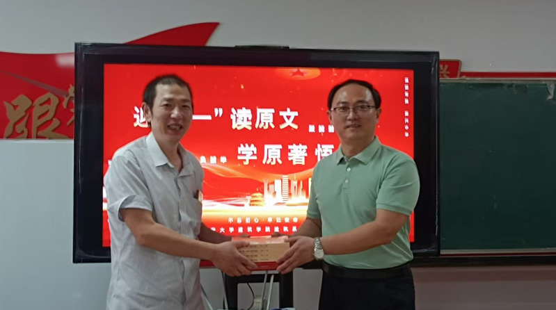 活动现场,建筑学院党委书记贾侃为党员们赠送了重要著作,勉励大家深入研读,领悟党的理论精髓。赠书仪式后,党员们认真阅读原著,不时在书上圈圈点点,记录下自己的思考与感悟。
