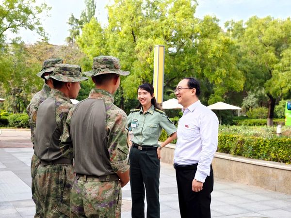 党委书记贾侃深入了解军训开展情况,与教官们深入交流,详细了解训练进度和学生表现,代表学院对承训教官的专业素养与辛勤付出表达诚挚谢意。希望教官们继续以高标准帮助学生锤炼意志、规范行为,更好适应大学生活。同时,他希望同学们珍惜军训时光,认真服从指挥,发扬不怕苦、不怕累的精神,在训练中磨练坚强品格,增强集体荣誉感,以饱满的精神面貌开启大学新征程。