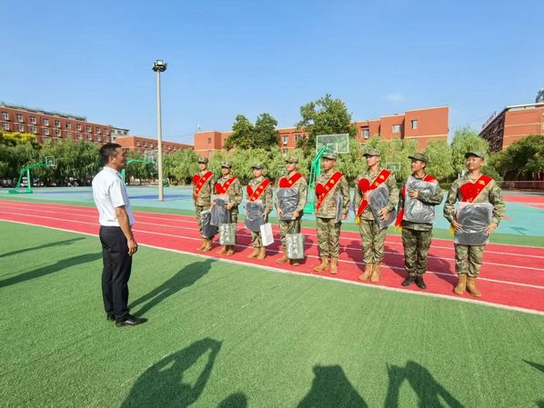 在欢送仪式上,范甲鹏同学身着崭新军装,胸戴红花,精神抖擞。老师为入伍学子整理行装、合影留念,用叮嘱传递温暖,向即将踏上征程的新兵们表达了崇高的敬意和美好的祝愿,勉励他们要不忘初心,牢记使命,严守纪律,刻苦训练,努力成长为新时代优秀的人民子弟兵。