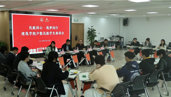 为深入贯彻落实习近平总书记关于加强和改进民族工作的重要思想,深化铸牢中华民族共同体意识教育,切实做好学生教育管理服务工作,10月16日下午,建筑学院在朝晖园“一站式”学生社区团体活动室举办“民族同心·筑梦同行”少数民族学生座谈会暨“书记下午茶/院长面对面”座谈交流活动。学院党委书记贾侃,院长侯全华,党委副书记、纪委书记、副院长冯鹃,党委副书记王妍婷,副院长陈稳亮以及全体专兼职辅导员和学生代表参加,会议由学办副主任周艳龙主持。