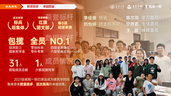 根据长安大学《关于表彰2024-2025学年本科生文明班集体的决定》,经班级申请、创建培育、达标验收、院(系)推荐、学校审核、评选答辩和网络公示等环节,建筑学院2021410201班凭借扎实的学业根基、亮眼的竞赛成果、深厚的集体凝聚力,在多轮角逐中脱颖而出,成功获评“标兵班集体”荣誉称号。31名学子以青春为笔、以奋斗为墨,在城乡规划专业的赛道上书写了“菁彩燃放,筑梦领航”的青春答卷。