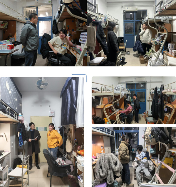 检查主要围绕严格排查大功率、高发热电器(特别是电取暖设备)使用情况;严厉纠治私拉乱接电线、违规取电等行为;严禁各类电动车(含电池)入楼充电或飞线充电;严肃排查电器、插座覆盖衣物或横跨床铺等危险情况;严禁在宿舍内及学生公寓公共区域吸烟;排查使用非 3C 认证的电子产品;督促学生及时清理快递包装等易燃物品等几个方面开展。走访过程中,学院领导和各年级辅导员与同学们就在校生活、学习考试、生涯规划、求职就业等方面进行了密切交流,叮嘱大家提高宿舍消防安全意识,增强自身防范能力,确保人身及财产安全,保持良好的学习生活习惯,做好期末考试复习规划。