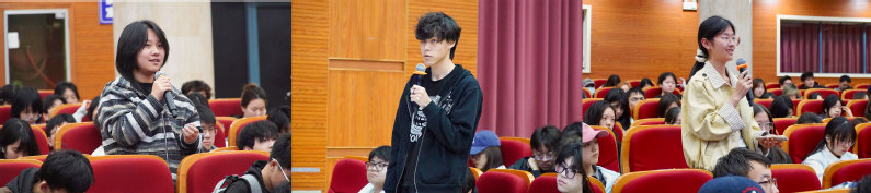 交流互动环节,同学们围绕文化传承与创新、专业核心技能等方面踊跃提问,校友曹惠源做精彩解答与分享。